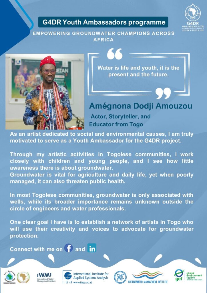 “Water is life and youth – it is the present and the future. As an artist, my goal is to build a network of creatives in Togo to use their voices and creativity to advocate for groundwater protection.”