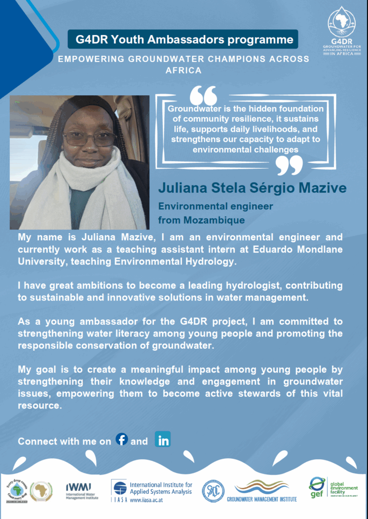 The G4DR Youth Ambassadors Programme brings together a vibrant network of young people from across Africa who are passionate about sustainable groundwater management and climate resilience. Representing Benin, Malawi, Mozambique, Togo, and Uganda, our Youth Ambassadors support awareness-raising, community engagement, and knowledge sharing, helping to amplify youth perspectives in water governance and decision-making.